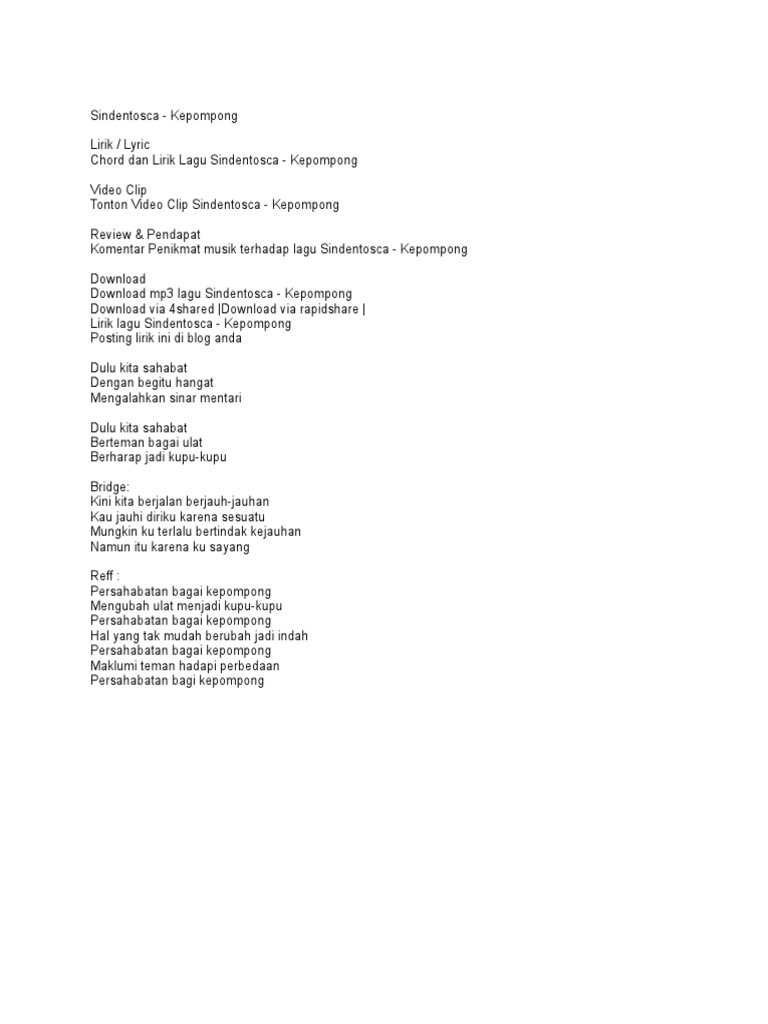 Lagu Dari Ulat Jadi Kepompong Lirik